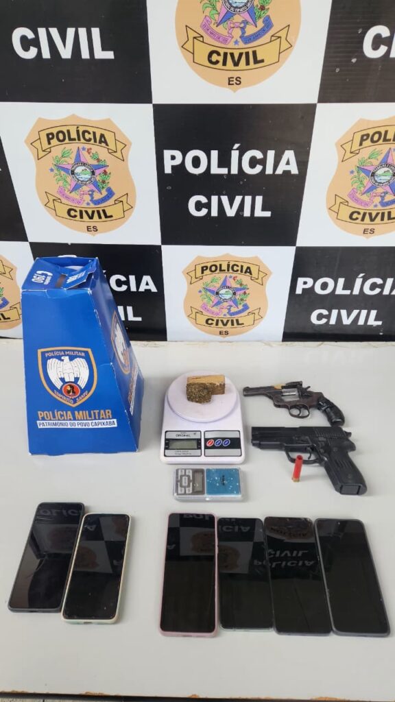 Durante a operação duas pessoas foram detidas e os seguintes itens foram apreendidos: 01 pedaço de maconha, pesando aproximadamente 69 gramas, 01 revólver calibre .32, sem numeração aparente e sem tambor, 01 cápsula deflagrada de calibre .36, 01 simulacro de arma de fogo, 02 balanças de precisão, 03 motocicletas com restrição de furto/roubo (01 Honda/CG 125 Fan, cor vermelha), (01 Yamaha 125, de cor vermelha), (01 Honda/Pop 100, cor preta), além de 01 tanque de combustível de motocicleta CG vermelha, 01 bomba de água 2CV, 07 aparelhos celulares e 01 relógio.