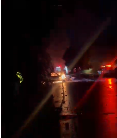 Carro pega fogo após colisão na ES-130, em Boa Esperança
