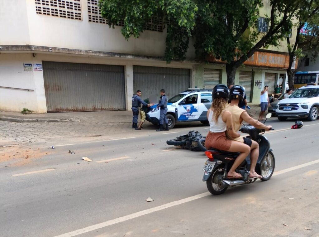 Um acidente de trânsito foi registrado na tarde deste domingo (11), nas proximidades do Auto Posto São Gabriel. A ocorrência envolveu uma motocicleta e uma pick-up Strada.