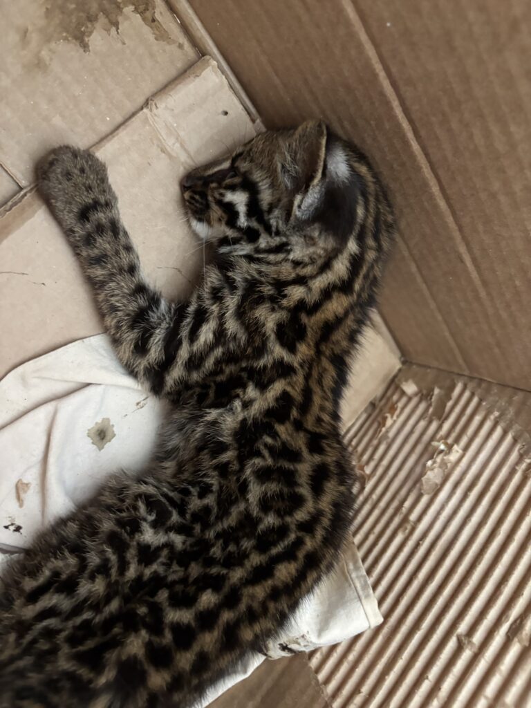 A Secretaria Municipal de Meio Ambiente de São Gabriel da Palha/ES realizou nesta quinta-feira (13) o resgate de um felino silvestre, uma jaguatirica (Leopardus pardalis), encontrado em uma propriedade na zona rural do município. O animal aparentava estar debilitado e desorientado, e vinha sendo acolhido por uma moradora local até a chegada da equipe técnica.