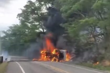 Uma carreta tombou e pegou fogo na tarde deste domingo (16) nas proximidades do município de Águia Branca, no Noroeste do Espírito Santo. O acidente chamou a atenção de moradores e motoristas que pass...
