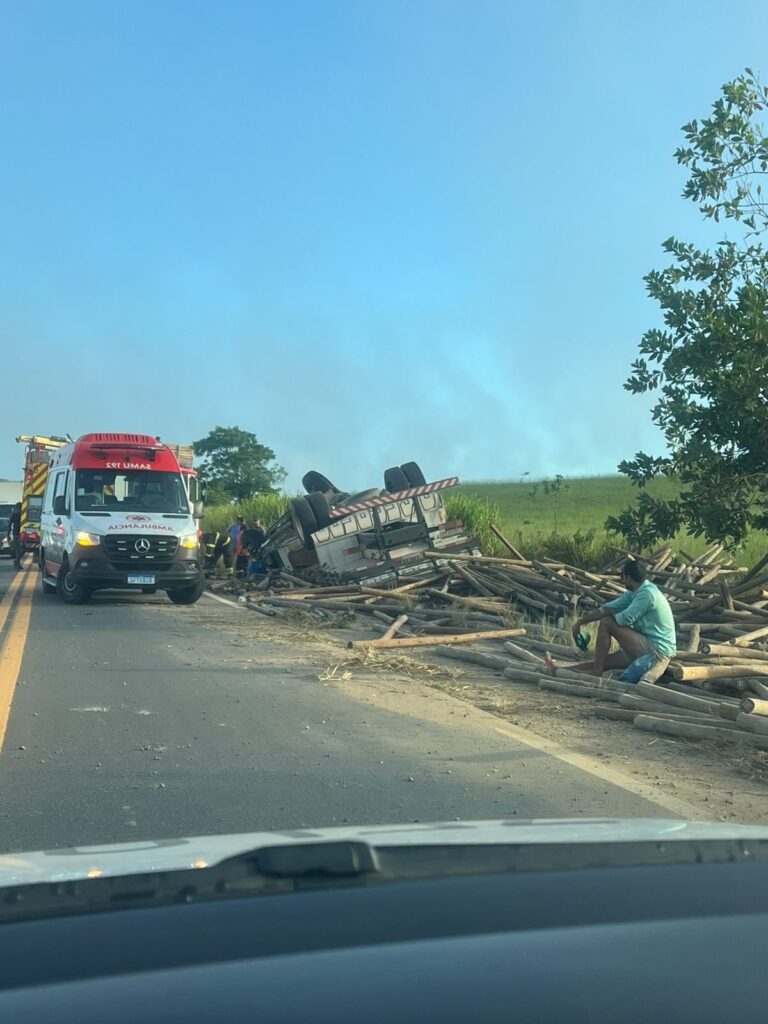 Um caminhão que transportava carga de eucalipto se envolveu em um acidente na manhã deste sábado (21), na rodovia que conecta Nova Venécia a Boa Esperança, no Noroeste capixaba. A ocorrência foi registrada nas imediações da comunidade de Córrego da Lagoa.